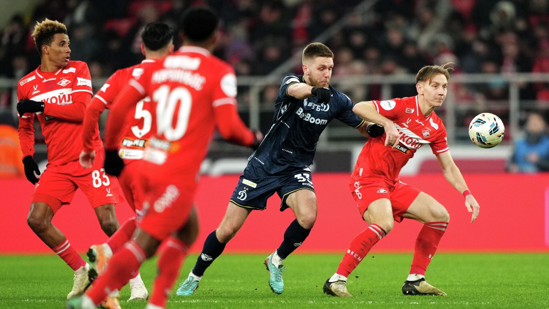 В матче 18-го тура чемпионата России по футболу московские клубы "Спартак" и "Динамо" сыграли вничью – 1:1.